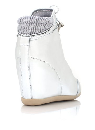 Vegan leather wedge sneakers. These lace-up kicks feature an embellished tongue, stretchy laces, and a slightly padded rear panel at the opening. Shoes don't have a hidden platform. Wedge height: 3 inches. Finished with a slightly padded vegan leather insole. Man made materials. Imported
