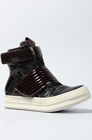 Jeffrey Campbell The Bones Sneaker. Jeffrey Campbell Bones Sneaker in Black Crocodile These Jeffrey Campbell sneakers are not to be taken lightly! Create a teasingly tough look with these sneakers by pairing them with your favorite hoodie, skully hat, and some pouty red lips! Textured leather boot with lace up closure and wide velcro straps across the foot and top of ankle zipper on the inside perforated toe 5 high with a 13 ankle heavy duty rubber soles Imported By Jeffrey Campbell.