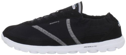 Get a move on and reach new steps in your fitness training with the Skechers Go Walk - Nice sneakers from Skechers. These lightweight sneakers boast a soft lace-up closure with suede overlays, cross-stitched accents, and elastic at the collar for a personal fit. Smooth lining is breathable and stretches easily, while the insole maintains cushioned comfort. The Resalyte midsole gives added cushioning to your step and has flexible traction pods for durability and easy movement.