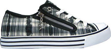 The Gotta Flurt Lenwood cute casual sneakers for women add sporty style and comfort to any outfit. These plaid canvas women's sneakers feature a cute side zipper detail with a star charm for an extra touch of style. A rubber cap toe and durable rubber sole give this women's casual shoe a sporty look for everyday wear.